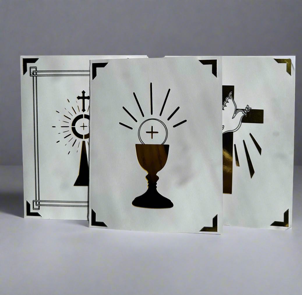We strive to create thoughtful and well-crafted pieces that embody the Catholic faith. Our aim is to fill a gap we kept facing when trying to find affordable sacramental gifts with our collection of handmade cards and items made right here in Canada!